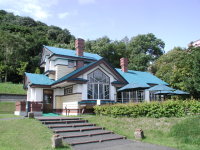 昭和2年、北海道帝国大学農学部の小熊捍博士(Dr.Mamoru Oguma)邱として、札幌市南1条西20丁目に建てられた洋館。平成10年に藻岩山ロープウェイの乗り場近くに移築され喫茶店として使われている。 | 少し高台にある旧小熊邱のテラスからは札幌の町並みが木々越しに見え、ちょっと豪華なコーヒータイムが楽しめる。 | |